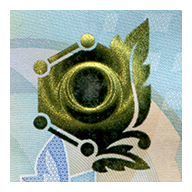 When looked at from different angles, some elements of the banknote generate a dynamic light effect – the ink in some areas gradually changes color from gold to jade green